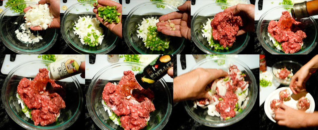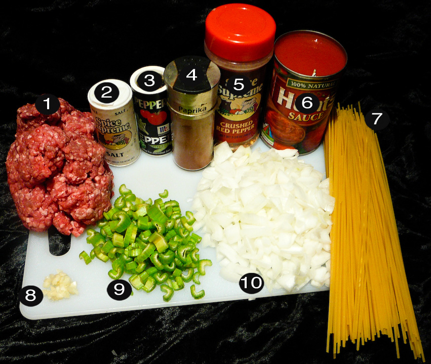 Boil spaghetti al dente while you make the meat balls: mix in ½ the onions, ½ the celery celery, garlic, ground beef, salt, and pepper together in a bowl and create balls.
