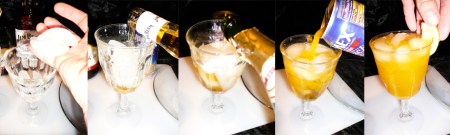Riding dirty is the Southern way. At least that is what I learned on my most recent visit to New Orleans. I befriended a Southern belle boozing it up with absinthe at a vampire bar down a dark alley. She did not believe that I was a master of disaster in the kitchen. So I took her challenge on the spot to go back to her place and fix up a meal with only what I found in their kitchen. This cutie with an even cuter accent was unprepared for the awesome assault I unleashed in her mouths and loins. I managed to make NEVER FLAKES CRAB CAKES (minus the mango), a simple salad and a SLOB ON MY KNOBBLER COBBLER with pears. My payment for all my efforts was a cocktail that I present to you. She called it a Pink Lady since she is after all genteel and demure. But the demure soon fizzled away by our fourth round. That’s when she showed me true hospitality in her boudoir. It was only after, while I sipped a lukewarm pink lady as she slumbered next to me that I understood the saying: “Laissez Les Bon Temps Roulez.”