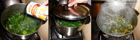 Turn the heat up high, add the chicken broth, and bring to a boil while covered (approx 5 min). Remove the top, put the heat down low and slowly cook out the broth so you have moist veggies (approx 20 min).
