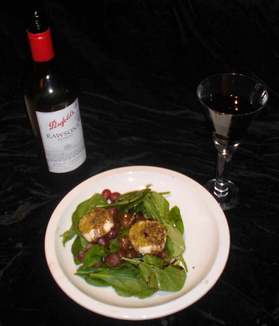 Baked goat cheese salad, healthy, vegetarian, balsamic reduction, salad, bake, goat cheese, spinach, grapes, pistachio, nuts, simple, classy, sinful, kinky, seduction, romance, sex, naked, bang, easy, gourmet, kitchen, delicious, get laid, game changer, intercourse, guarantee, lunch, healthy, aphrodisiac