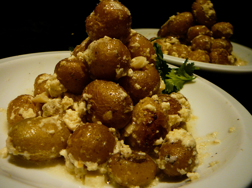 Throw the oven-hot potatoes into a mixing bowl, add the rest of the salt and pepper and KABOOM!