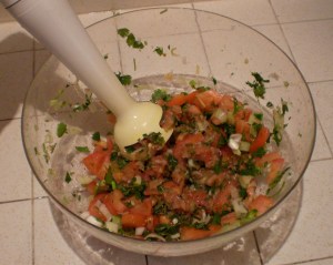Mix like an 80’s hip-hop DJ until the salsa break-dances on your date’s tongue via a tortilla chip or your finest taco sampler.