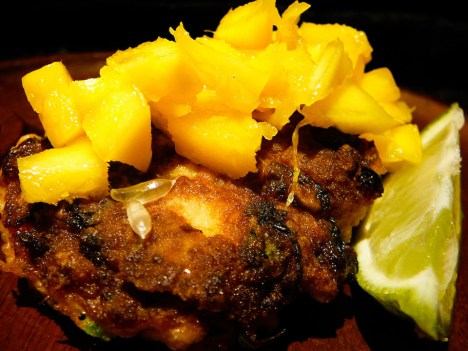 Kick the crab cakes up a notch by serving up some HORIZONTAL MAMBO MANGO SALSA.