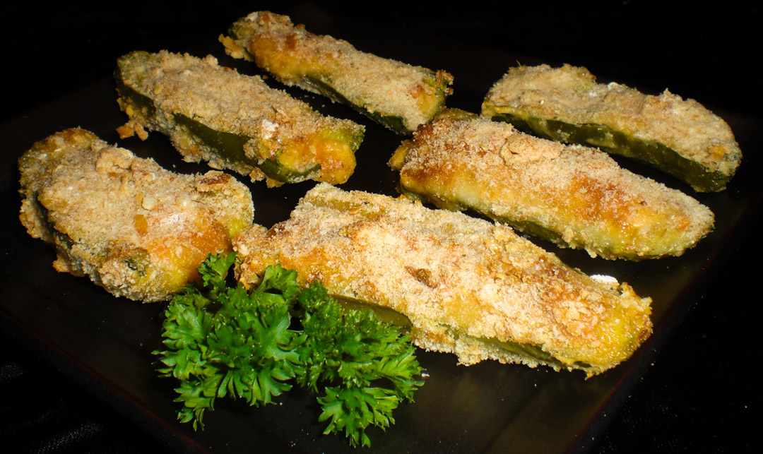 Shove the baking pan full of prepped jalapeños in the oven.  Bake until the breading browns and the cheese begins to ooze out the side.  (Approx 30 min)  Now you’re good to serve it up on a platter with ranch or ketchup.  Who’s the player now?