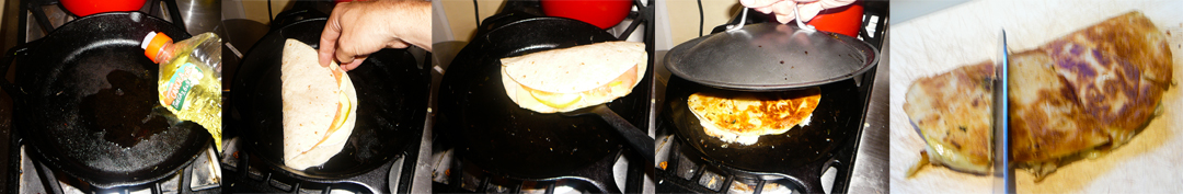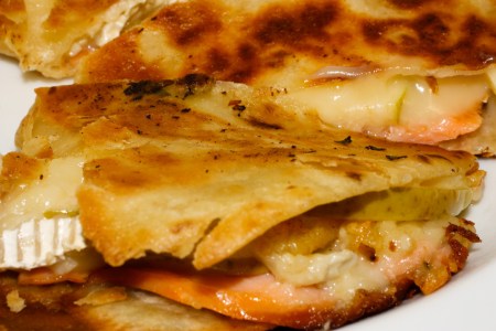 Quesadillas are an endless parade of potential. You can’t help but get creative with that classic cheese and tortilla combo. What cheese with what extra goodness is about as varied as positions in the Kama Sutra. While eating too many quesadillas, even fancy ones like this Mexican-French fusion, would be counter-productive to recreate some of those gravity-defying feats, a little splurging never hurt nobody. One of these compliments a little cocktail like a 19th Century butler kisses the asses of an England manor’s residents. The thong looks lovely, Lady Mortimer. Shall I draw the curtains and remove my trousers, Miss? Have you experienced your third orgasm, Madam?