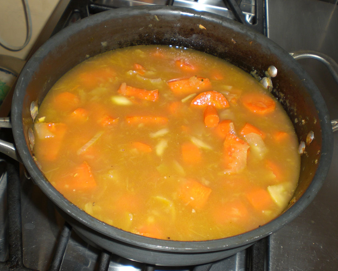 During those cold winter months two things can keep you warm: a hot body and soup. One can take care of the other. Pick up the phone, comment how cold it is, and encourage your play pals over to warm their sexy bones with a bowl of soup and your charming ass. Keep in mind that soup takes a little while, but also lasts a while so making a bunch never hurts. Just multiply the recipe and you’ll have lunch for a week. The ginger in this recipe is also great for fighting off sickness like the common cold or celibacy.