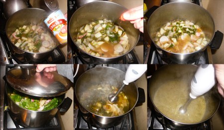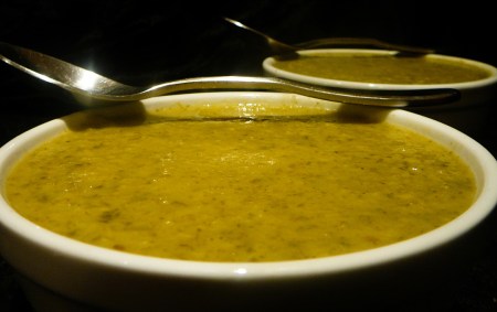 Pour the stock in, add the saffron strands, and bring to a roaring boil. Turn the heat down low and simmer, covered until the veggies are super duper soft (approx 20 min). Puree the soup until it’s all a unified, banging blend.