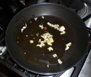 Pour the olive oil in the pan and sauté the garlic for 30 seconds.