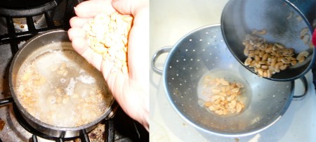 While the chicken marinates, bring a small pot of water to a boil. Throw in the cashews and boil until they are soft (approx 5 min). Drain and set aside.