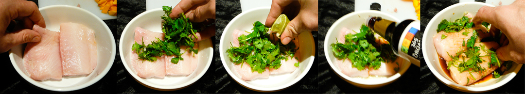 Marinate the black cod fillets in the cilantro, lime and soy sauce (approx 15 min or longer).