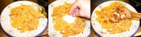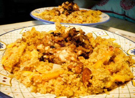 If you are rocking cous cous with your chicken, you are stoked! Lay the cous cous evenly over the plate. Create a hole in the middle and fill it with your chicken.