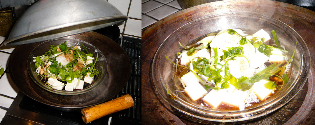 Prop the bowl up in a boiling wok covered (approx 15 min).