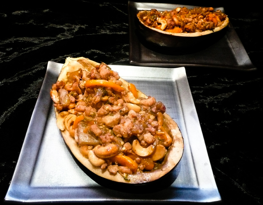 I’m sure someone has told you at some point in your life to “Get Stuffed” or something like that in one language or another. In essence they are telling you to get banged, which in some ways is a rather considerate suggestion. We all could do with a little more stuffing. Everyone would be a whole lot nicer without sexual frustration inspiring dickishness to the masses. It very well could be the solution to terrorism, the recession and what really happened to the dinosaurs. Attention Nobel Foundation: Please send the peace prize directly to my underground lab. In celebration, let’s stuffed some eggplant with our favorite meat and recognize that even in turbulent times, we still need to enjoy life. Cook To Bang, making the world a better-fed and sexier place.