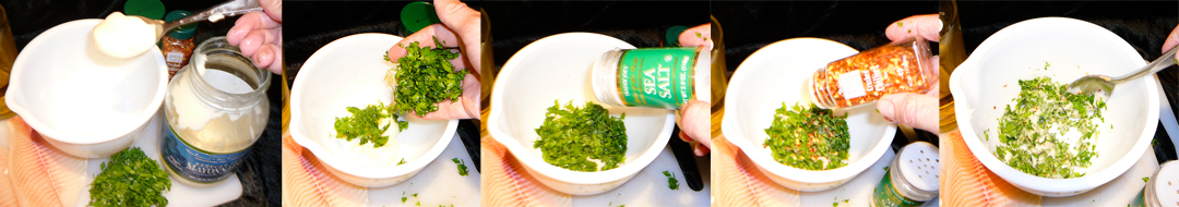 Mix in a bowl the mayonnaise, Italian parsley, sea salt, and crushed red pepper.