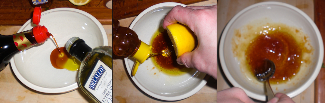 Mix the soy sauce, olive oil, honey and lemon into a sticky sauce that would glisten in the noonday sun.