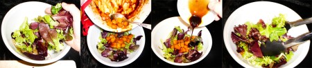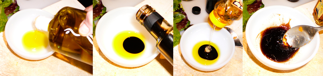 Combine the olive oil, and remaining honey and balsamic vinegar, stirring it into a dressing.