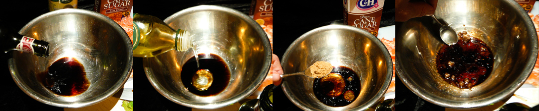 Create the dressing by mixing the balsamic vinegar, olive oil and brown sugar.