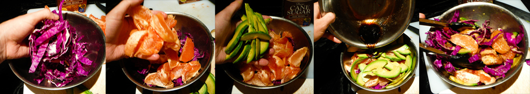 Toss the cabbage, grapefruit and avocado with the dressing.