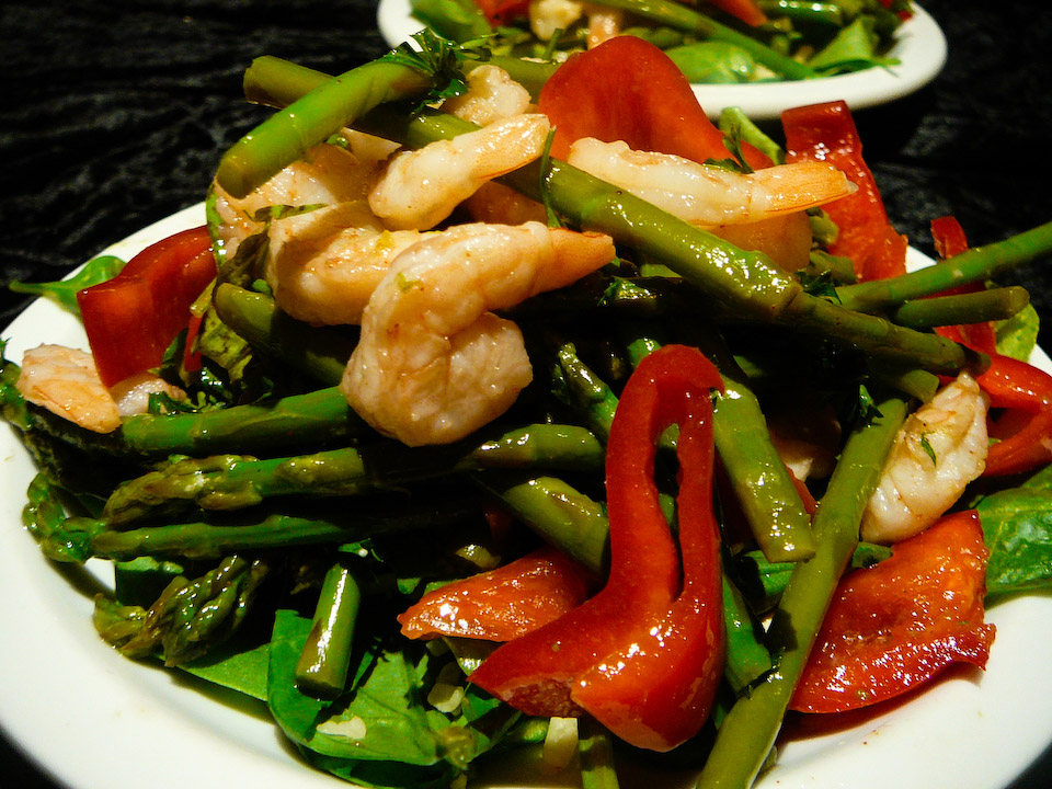 shrimp asparagus salad steam chop
