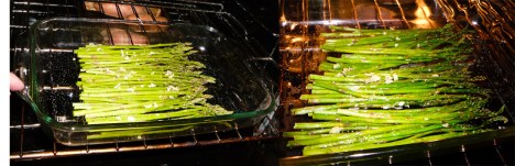 Throw the asparagus in the oven and roast until they brown slightly (approx 30 min). Serve that delicious goodness up with something equally healthy and banging.