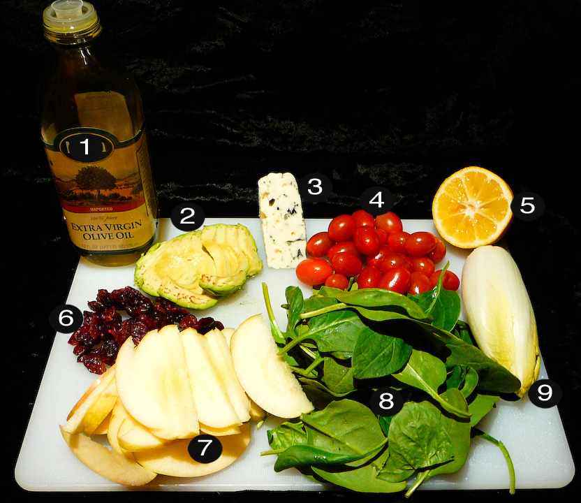 This salad will rock her world.  It will also rock his world.  And its world should your dog eat it before you can.  It’s like a techno dance party in your mouth.  Each complimentary flavor will have the chance to bust a move on your tongue’s dance floor.  The tart of the lemon will give a shout out to the creamy Roquefort who kicks it over to the endive ditty on out to the crispety crunchety apple who tips its hat to the tangy cranberry bossa nova.  No one is immune to the uncontrollable taste bud tango.  This is a great way to warm the evening up with a little bit of this and whole lot of that.  Warning: those allergic to edible orgasms should steer clear if you know what’s good for you.