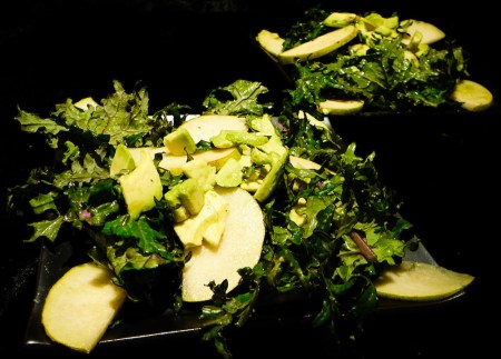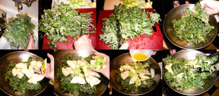 Rinse the frisee, cut off the stems, and chop coarsely into pieces you can stuff in your mouth. Throw in the pear and avocado. Toss it all with the dressing and hot damn do you have yourself a salad.
