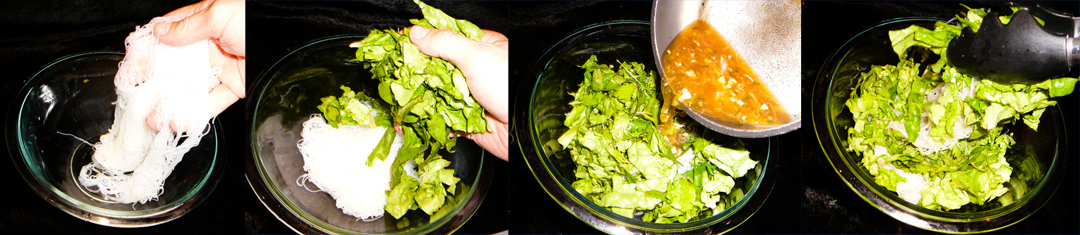 Throw the noodles in a bowl, lettuce, and cilantro in a bowl. Toss with the Nuoc Cham sauce.
