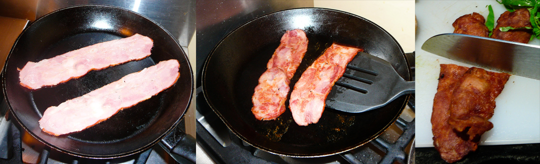 Create Hollandaise sauce. Melt the butter on the lowest heat. Separate the yolk from one egg and mix it up with Dijon mustard, lemon juice, melted butter and cayenne pepper. Whisk it up into frothy awesomeness.