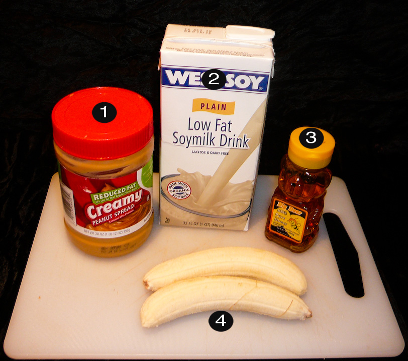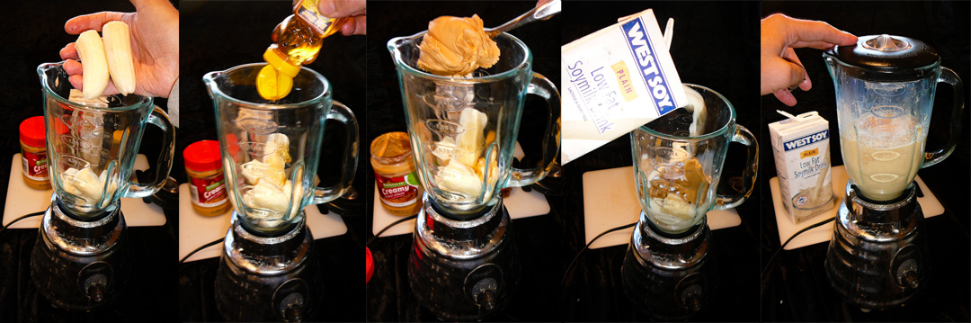 Combine the frozen bananas, honey, peanut butter, and milk. Blend the shit out of them and serve with your best Elvis impression, preferably the young svelte version instead of the dead, fat bloated Elvis.