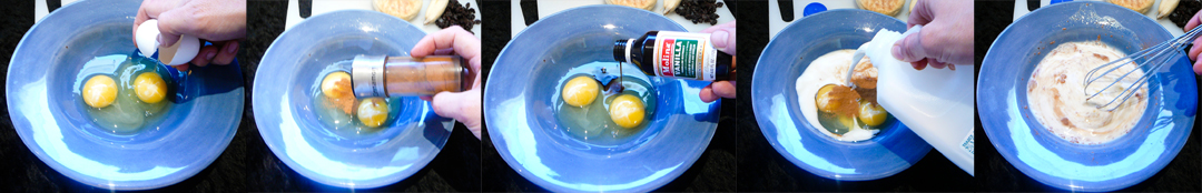 Create the batter by whipping up the eggs, cinnamon, vanilla extract and milk.