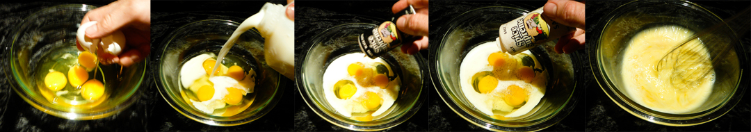 Beat the eggs thoroughly in a bowl with the milk, pepper and salt.